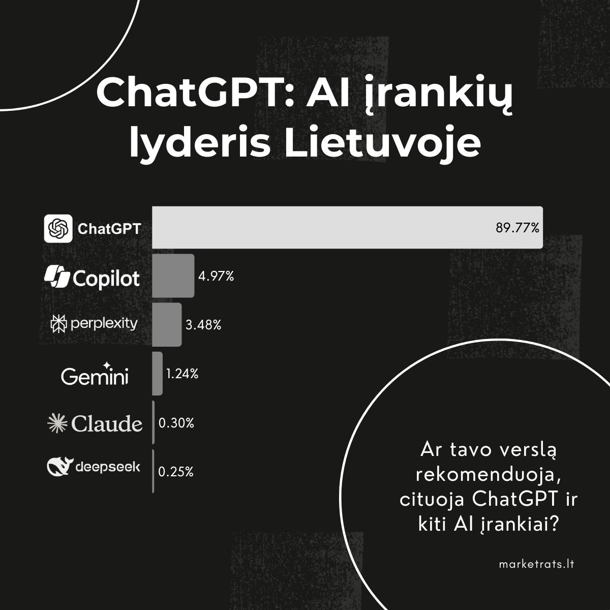 Tikėtina, kad artimiausiu metu „ChatGPT“ nei Lietuvoje, nei pasaulyje nebus išstumtas iš lyderio pozicijos. Tad šiuolaikiniam verslui būtų neprotinga praleisti šio DI įrankio teikiamas galimybes. Jei norite, kad jūsų prekės ženklas ar turinys būtų minimas, rekomenduojamas „ChatGPT“ atsakymuose, vien sėkmės nepakaks. „ChatGPT“ neatsako atsitiktinai – jis formuoja atsakymus remdamasis informacija internete. Jei norite sužinoti, kaip prie to prisitaikyti, skaitykite mūsų agentūros SEO (optimizacijos paieškos sistemoms) ir GEO (optimizavimo generatyviniams DI varikliams) specialistų kartu paruoštus patarimus.